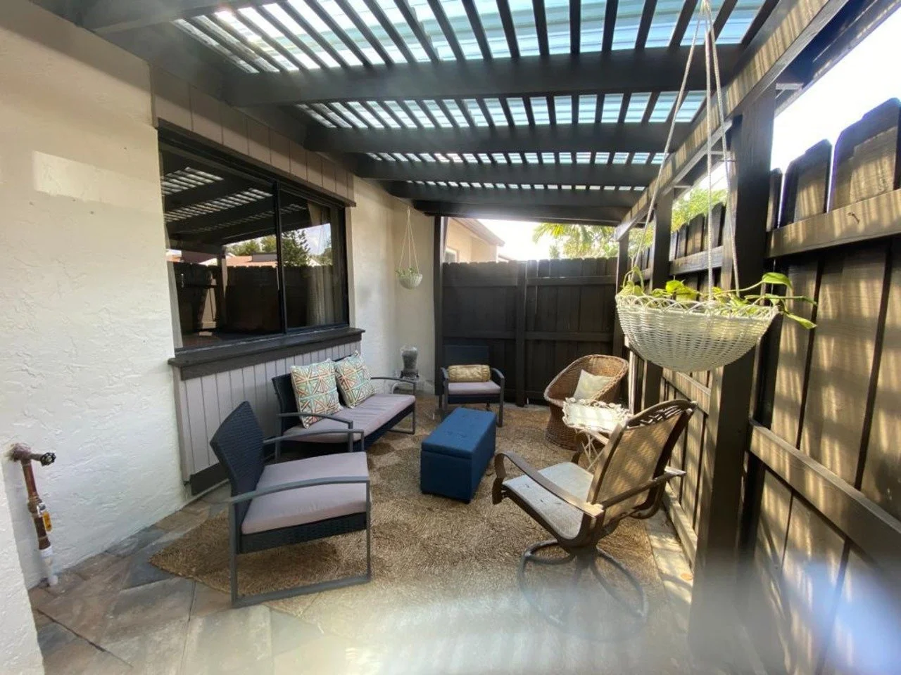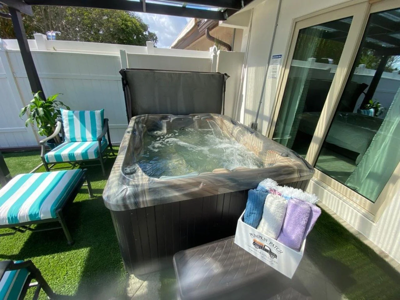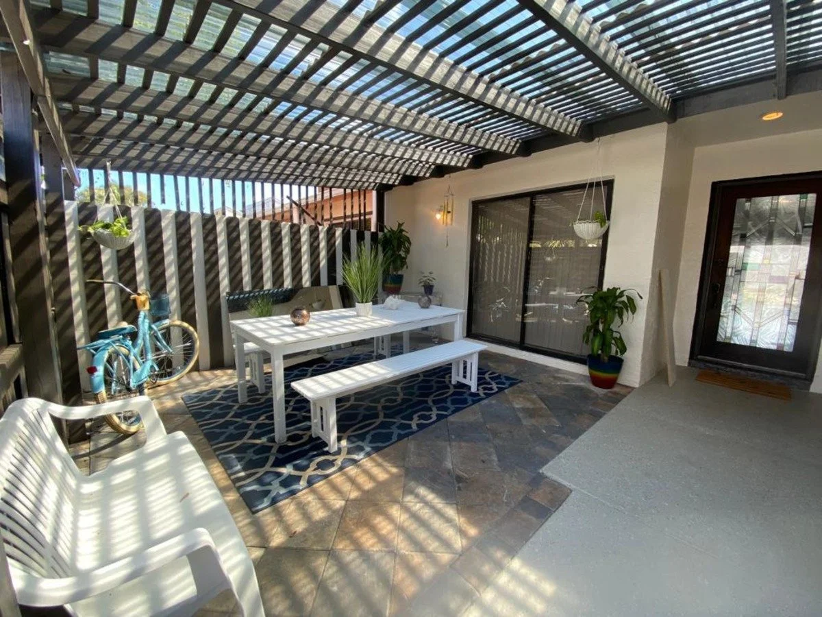 Beautifully remodeled villa includes open kitchen, new appliances, spacious living and dining rooms, power reclining sofa, wifi and TV's in each room. Spacious master California King bedroom has private bath and direct exit to the hot tub in the private backyard. A second bedroom overlooks patio area with adjacent full bath. Third sleeping area has futon. Two private outdoor living areas have seating and a large table for dining. Free parking right in front. Great Fort Lauderdale location.